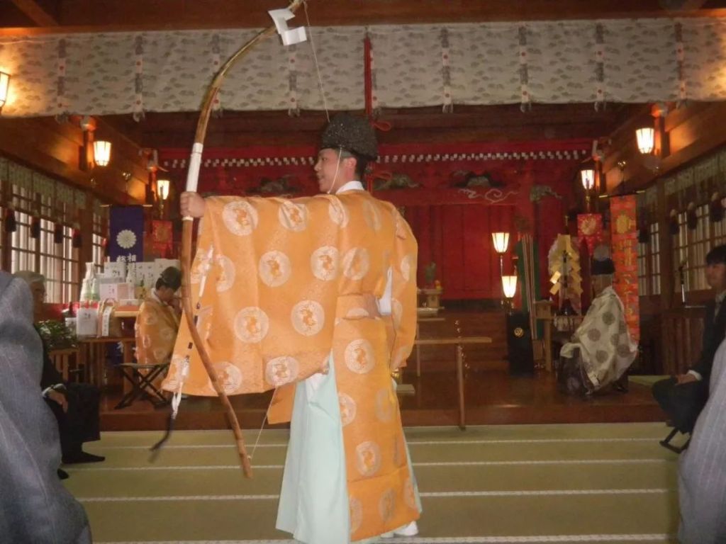 還有一種名為梓弓鳴弦的神道儀式。古代的梓弓與現代和弓上長下短不同,形狀更加圓潤對稱,這種弓的設計也並非真正拿來射箭,而是通過拉弦空放產生弦音來驅除鬼邪。在古代舉行儀式或是產婦生產時,會進行這種鳴弦儀式。可惜當今梓弓製造方法大多失傳,使用現代和弓以及安裝了特殊箭頭的箭矢、或者乾脆就進行正常的弓道納射,這樣的儀式更加常見。