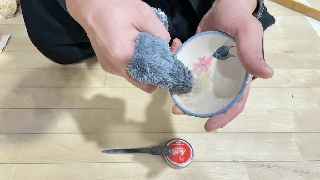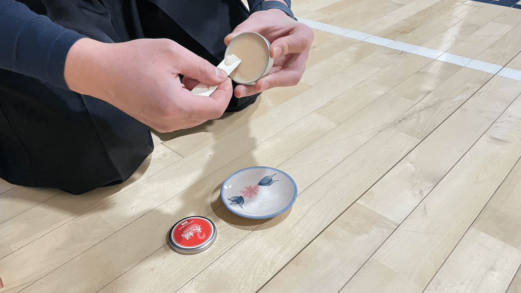 回到正題,Kyo桑這十多年來經歷東京、台北、紐約、北京等經緯度各不相同的都市,手上的竹弓也算是跟著自己南征北討,所以保養更是一門不可或缺的課題。今天想跟各位分享如何為我們的竹弓上蠟,這除了能讓竹弓保濕外,更能增加光澤,越盤越爽,但也是相當考驗耐性。