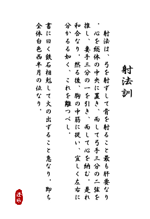 射法は 弓を射ずして 骨を射ること 最も肝要なり。