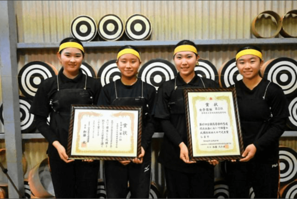 有個開心的新聞:這冬季舉辦的全國高中弓道選拔大會(由全日本弓道連盟主辦)女子團體賽中,宮崎縣代表隊——宮崎商業高等學校勇奪亞軍。