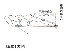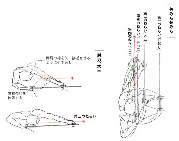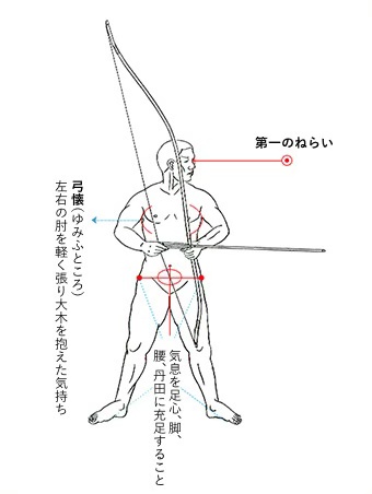 當上下左右的氣力充分平衡伸展,氣力於丹田(腹部)達八至九成時,氣力滿盈地發射出箭矢。