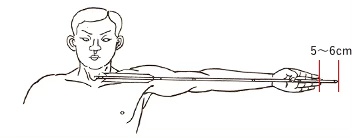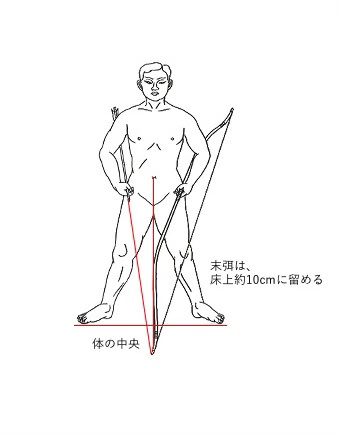 *末弭(urahazu:弦掛於弓的上端部分)需保持距離地面約10公分的位置。