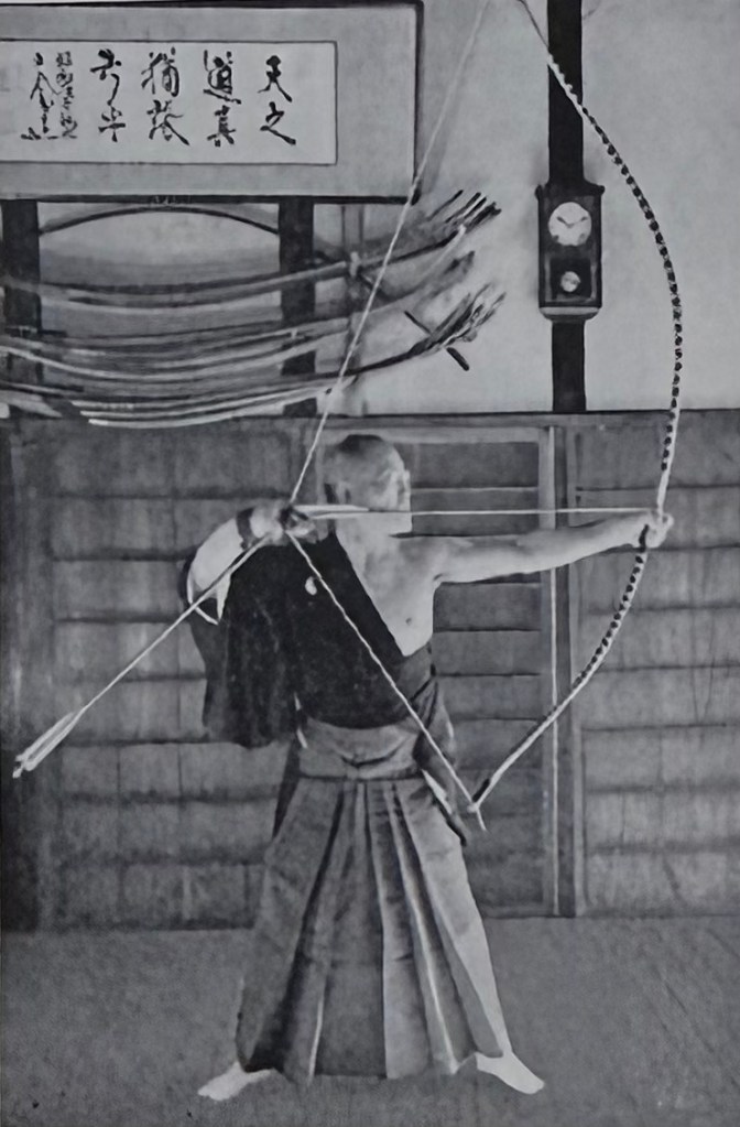 心氣與骨力,即使不加以意識,也會為了哪怕稍微接近「真の矢束」,而努力使身、弓、的達到完全調和狀態,這正是修行精進的最後階段。到達此一境界時,已不存在正行射的自己,也沒有弓,也沒有靶,反而會自然產生一種清淨而高雅的氛圍,這才是行射的真正目的。